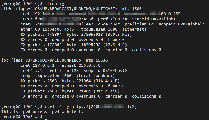 curl -6 -g http://[<GA分配的加速IP>]