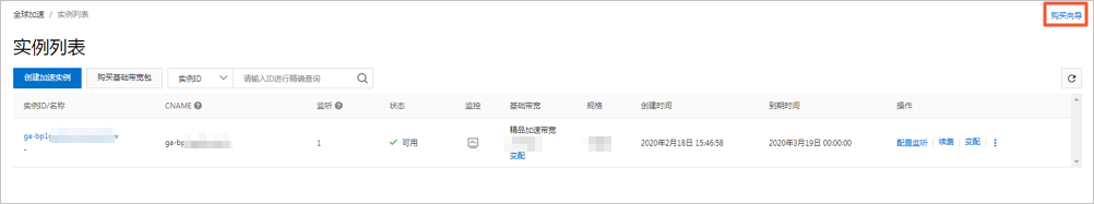 1.在實例列表頁面,找到步驟二:組合購買實例購買的全球加速實例,單擊其實例ID。