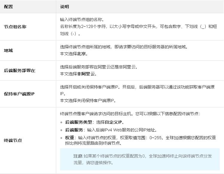 1.在配置終端節(jié)點組配置向導頁面,根據(jù)以下信息配置終端節(jié)點組。