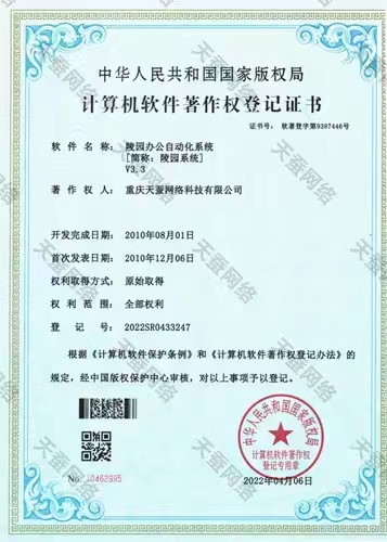 祝賀我司重慶天蠶軟件公司的軟件COAMS V3.3喜獲"軟著證書”