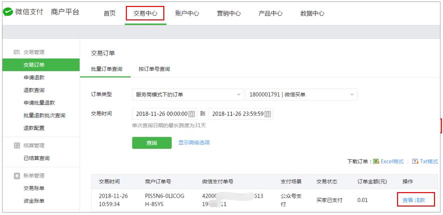 登錄商戶平臺后,可以通過查詢交易訂單發(fā)起退款申請或者按訂單號申請退款。