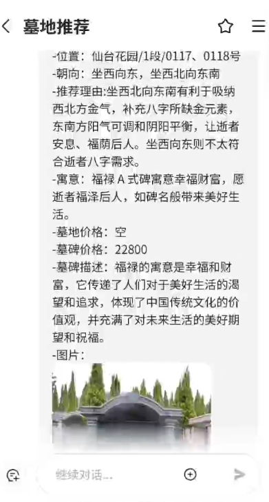 經(jīng)過天蠶公司的多日的研發(fā)的 公墓管理系統(tǒng),根據(jù)易經(jīng)風水學說,重慶軟件開發(fā)公司 通過對逝者的生名生辰八字分析,結合陵園系統(tǒng)的待墓位情況,判斷出適合逝者適合的墓位,并能匹配出陵園園區(qū)待售墓位給家屬,家屬可以根據(jù)匹配的結果,可以了解到該墓位的朝向、墓位價格、碑型、碑圖、寓意等等。詳細咨詢天蠶軟件開發(fā)公司的客服。